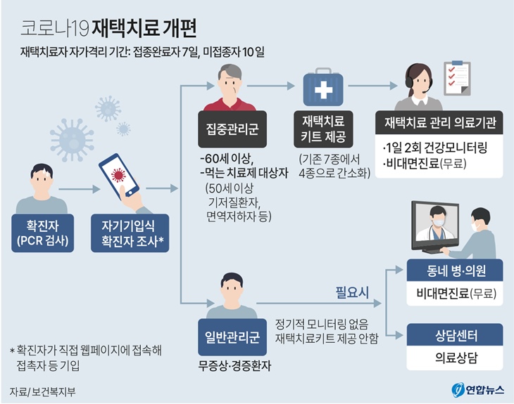 -재택치료자 급증에 따라 60세 미만 일반관리군으로 분류된 모니터링 의무를 폐지