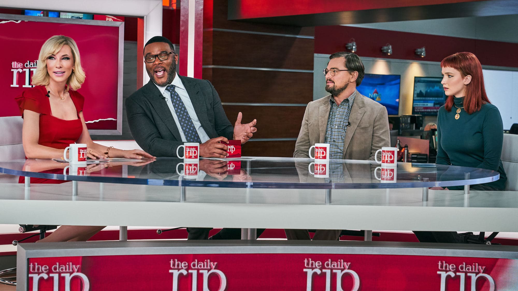 -지금까지 나눈 모든 이야기는 기밀사항으로 절대 외부에서 발설해선 안된다는 안내를 받지만, 백악관의 실체를 본 두 사람은 언론의 힘을 빌려 대중에게 이 사실을 알리고자 합니다. 하지만 그들이 출연하게 된 프로그램은 각종 연예계 이슈나 가십을 다루는 토크쇼였고, 지구 종말이 다가오고 있다는 중대한 소식은 셀럽 커플의 재결합이라는 화끈한 소식 이후 등장합니다. 결국 두 사람의 진지한 이야기는 그저 흥미로운 가설 정도로만 소개되고 마는데요. 화가 난 케이트는 '당신들 모두가 죽을 거야!'라고 소리 지르지만, 안타깝게도 그녀의 포효하는 모습은 인터넷에서 밈(meme)이 되어 돌아다닐 뿐입니다.