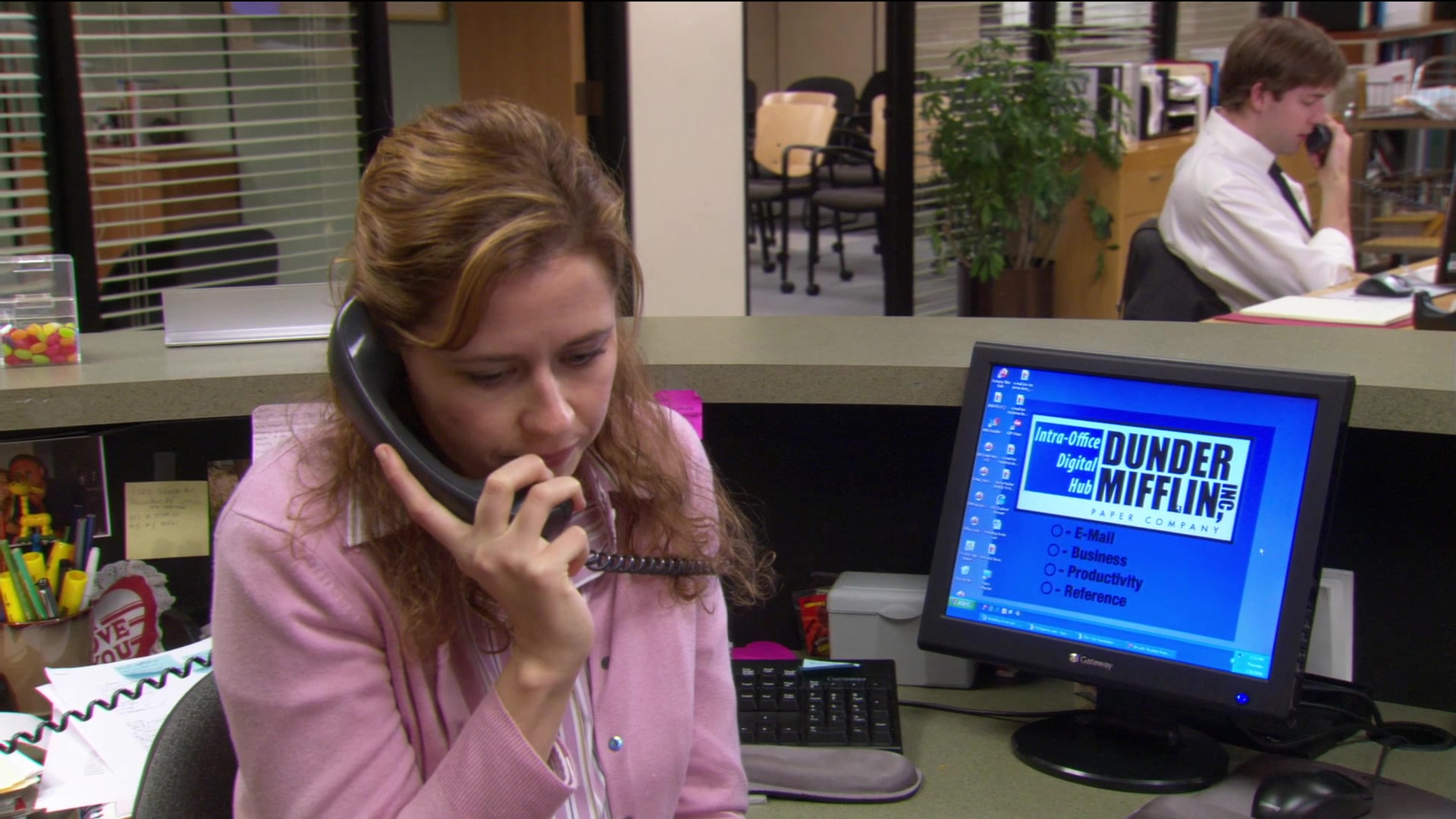 -한편 팸은 사무실에서 본인 결혼식 준비를 대놓고 합니다. 같은 회사 직원인 로이와 결혼하기 때문일까요? 직원들은 크게 불만이 없는 듯하네요. 켈리와 라이언은 나서서 팸의 초청장 정리를 회의실에서 도와주기도 합니다. 아직도 라이언에게 마음이 있는 켈리는 라이언에게 언제 결혼을 하고 싶냐는 둥 얘기를 꺼냈다가 결혼 생각이 없다는 라이언의 냉정한 말에 또 상처를 받고 마는군요.