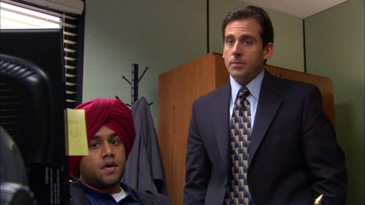 마이클 자신은 본인을 가장 개방적이고 비권이적이며 편견이 없는 진보적인 사람으로 생각하겠지만, 사실 그는 그 누구보다 편견으로 똘똘 뭉쳐있는 인물입니다. 금요일 오전부터 마이클이 또 사고를 칩니다. 터번을 쓴 한 남자가 차에서 내려 사무실 쪽으로 걸어오자 큰 공포에 휩싸인 마이클은 사무실 불을 끄고 아무도 없는 척을 하려 합니다. 하지만 사실 그는 터번을 썼을 뿐, 본사에서 보낸(적어도 본사와 함께 일하는 협력사 직원으로 추측) IT 관련 부서 직원이었습니다. 가장 은밀하고도 예민한 문제를 처리하러 온 직원과 첫 만남이 영 신통치 않은 마이클. 터번을 쓴 기술 담당 직원은 왜 스크랜턴 지점에 왔을까요? 에피소드 제9화 'E-mail Surveillance' 편에 대해 알아보도록 하겠습니다.